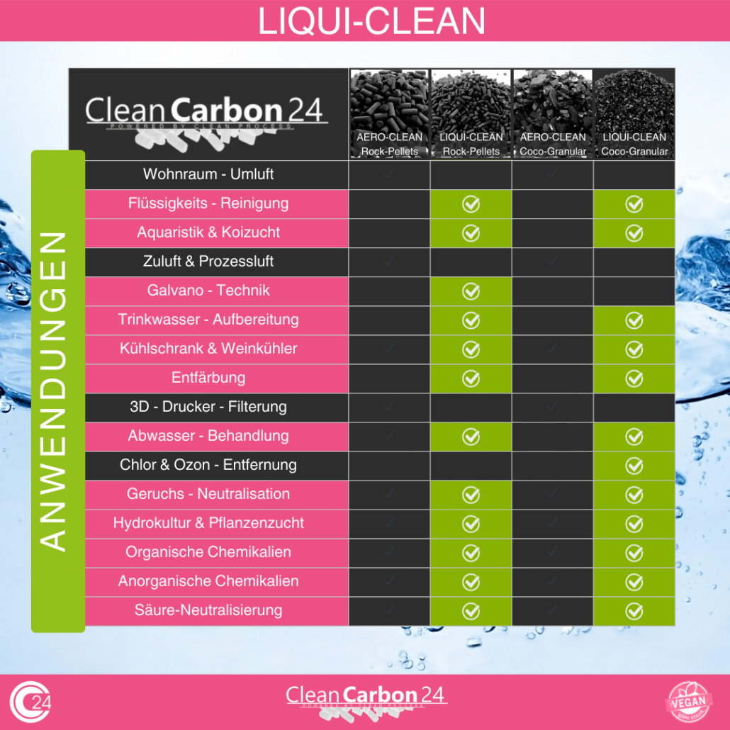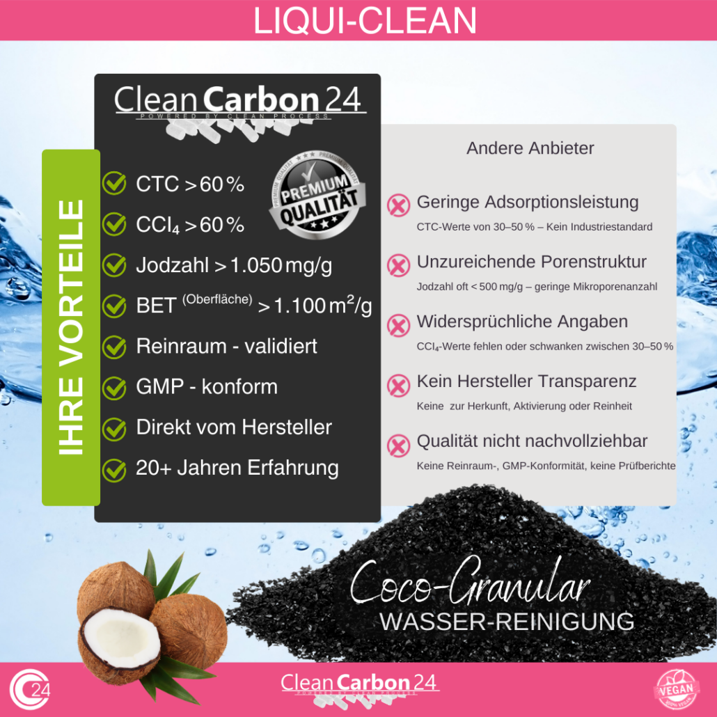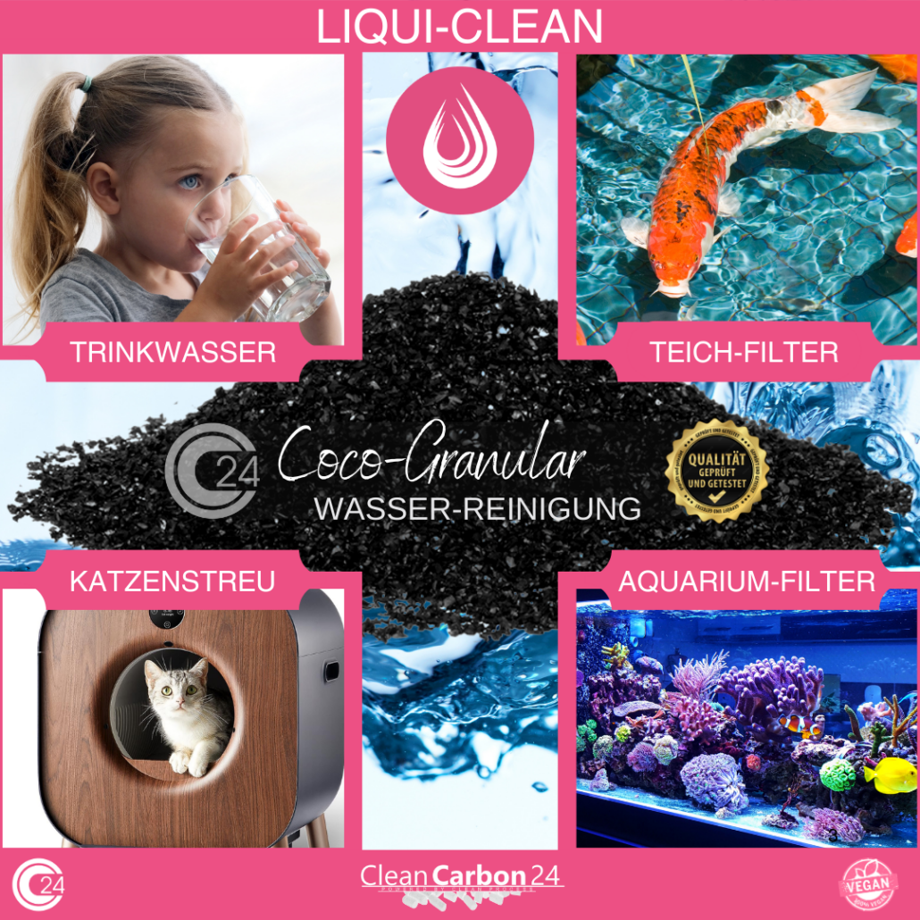 - ✨LIQUI-CLEAN Coco-Granular entfernt schnell Trübstoffe, Gifte, Schwermetalle wie Blei und Kupfer, Chlor, Medikamentenrückstände, Pestizide, Kalkpartikel, Rostpartikel, Mikroorganismen und Bakterien