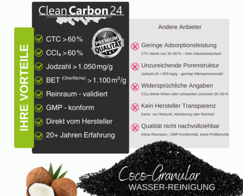 • 🌱 Natürlich stark – Kokosnussschale: Unser Kokosgranulat liefert maximale Adsorptionskraft bei minimaler Umweltbelastung – ein nachhaltiges Wasserfiltermaterial mit Wirkung.