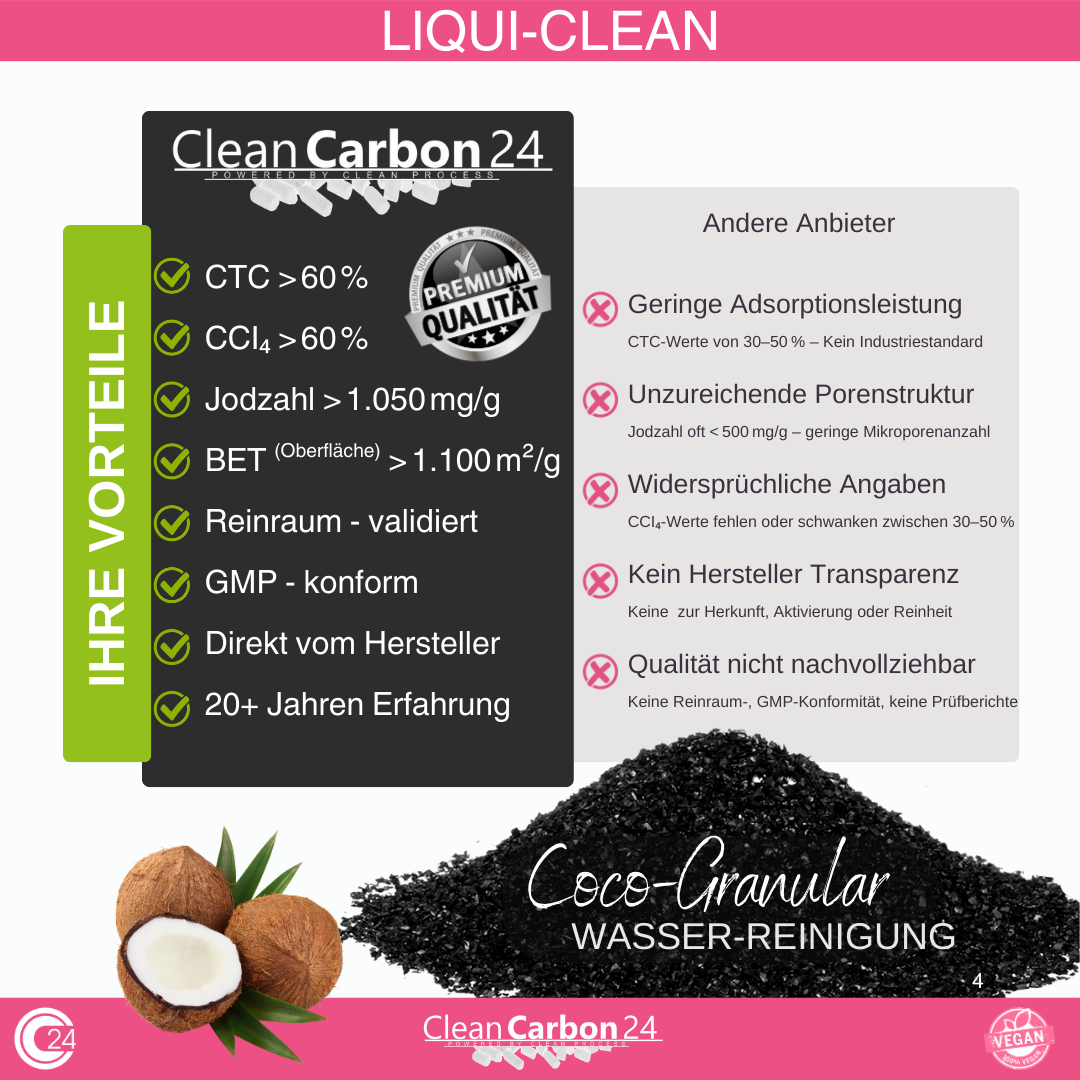 • ✨LIQUI-CLEAN Coco-Granular entfernt schnell Trübstoffe, Gifte, Schwermetalle wie Blei und Kupfer, Chlor, Medikamentenrückstände, Pestizide, Kalkpartikel, Rostpartikel, Mikroorganismen und Bakterien