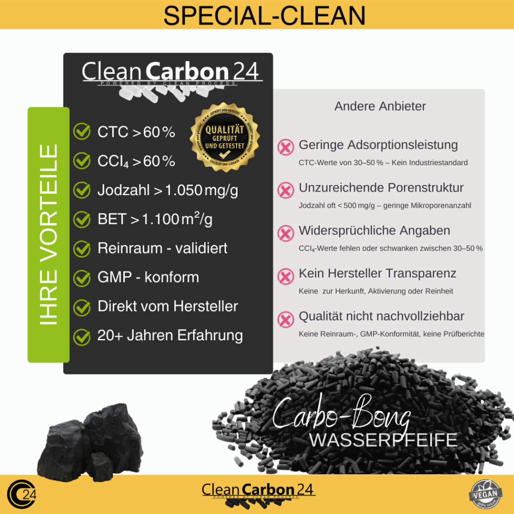 Carbo Bong Aktivkohle ist speziell für Adapter an Bongs und Wasserpfeifen gemacht. Die feine Pelletstruktur filtert Schadstoffe, verbessert den Geschmack und sorgt für einen angenehm sauberen Zug.