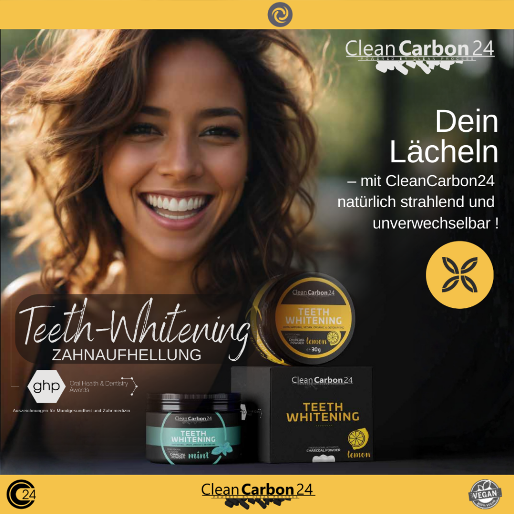 Unser innovatives Zahnaufhellungs-Pulver basiert auf seidenweicher Charcoal Powder Kohle und vereint modernste Aktivkohle-Technologie mit einem 100% natürlichen, veganen und organischen Ansatz. Es ist entgiftend und sorgt so für eine schonende Aufhellung Ihrer Zähne – perfekt für alle, die ein strahlendes Lächeln und gesunde Zahnpflege schätzen. Ab sofort erhältlich in den erfrischenden Geschmacksrichtungen Minze und Zitrone.